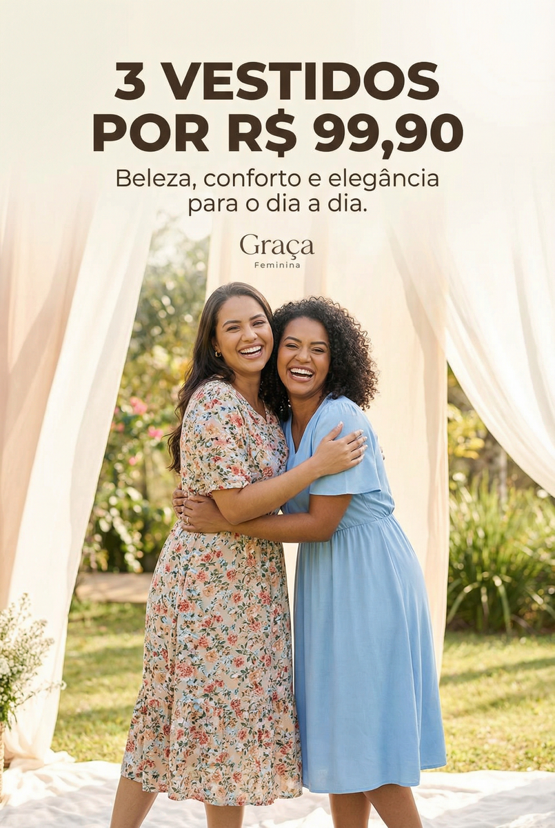 Acreditamos que se vestir bem também é sobre se sentir bem. Por isso, a Graça Feminina traz uma seleção de vestidos e looks femininos que unem delicadeza, elegância e conforto para acompanhar você em cada momento.